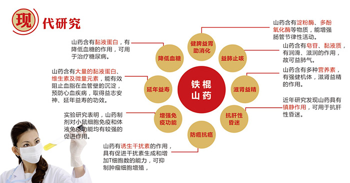 經(jīng)常食用鐵棍山藥,不但可以增強(qiáng)體質(zhì),滋養(yǎng)皮膚,延緩衰老,而且對腎虛腰痛、痛經(jīng)、腎虛精虧、食欲不振、食少便糖、脾虛泄瀉、肺虛久咳、肥胖等頗有良效。
